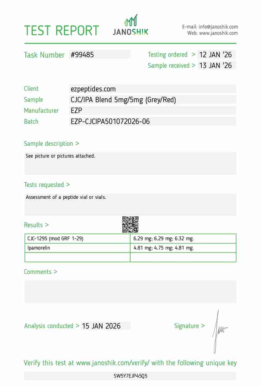 - Product Name: CJC-no DAC / Ipamorelin Blend 5mg/5mg